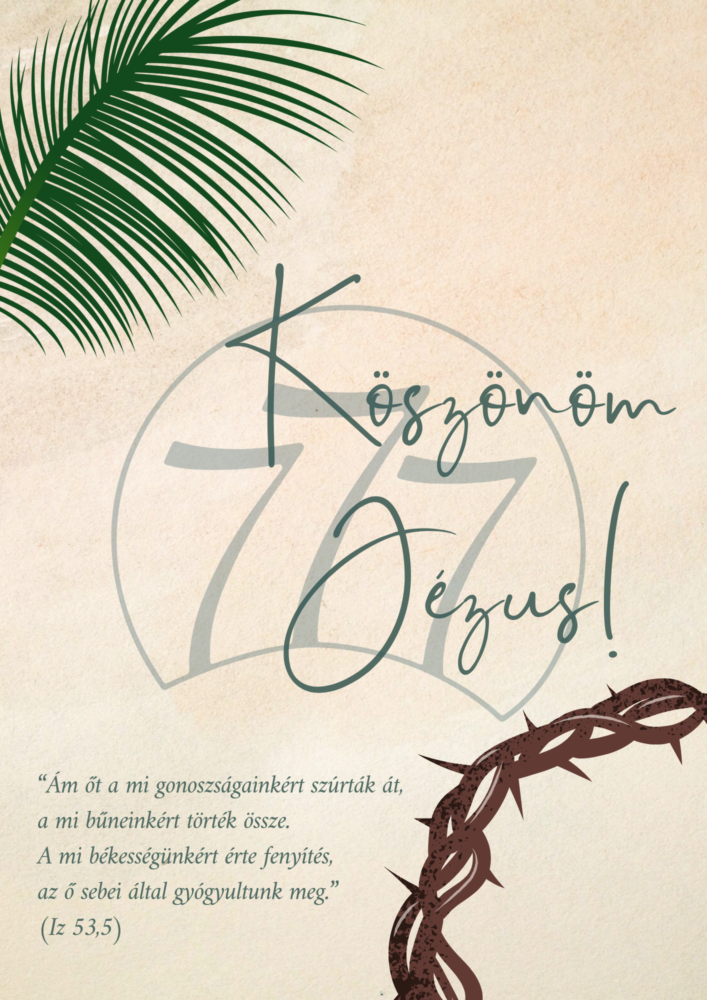 Húsvéti témájú igekép a megváltásért mondott hálával. Meghitt, mély jelentésű falikép, amely Jézus áldozatára és a gyógyulást hozó szeretetre irányítja a figyelmet.